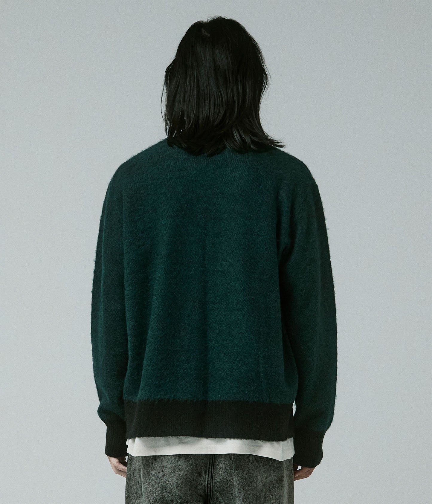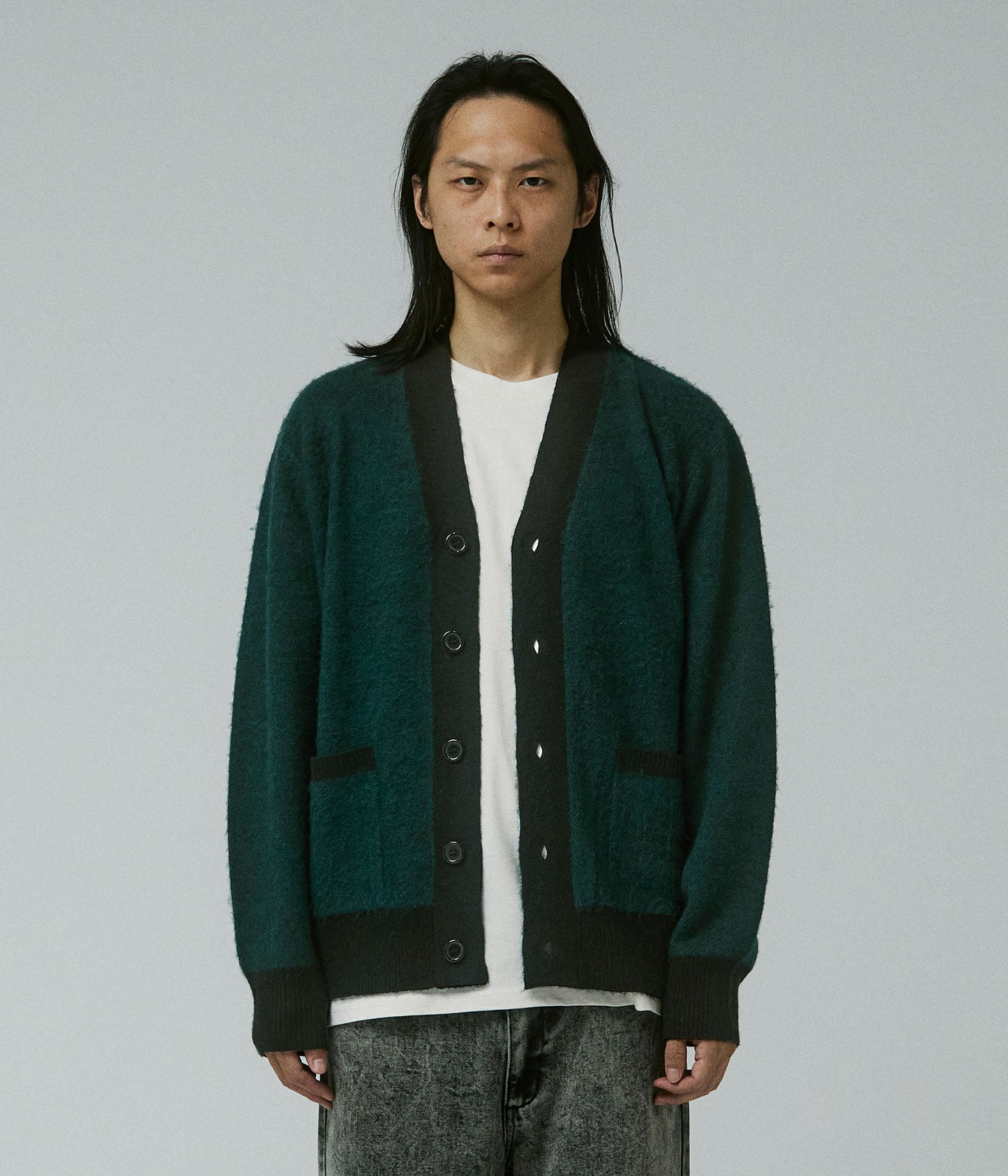 FORMER CARDIGAN FIt / 12 GAuGE kNIt WItH bRuSHING / DOublE FRONt POCkEtS / EMbROIDERY ON POCkEt