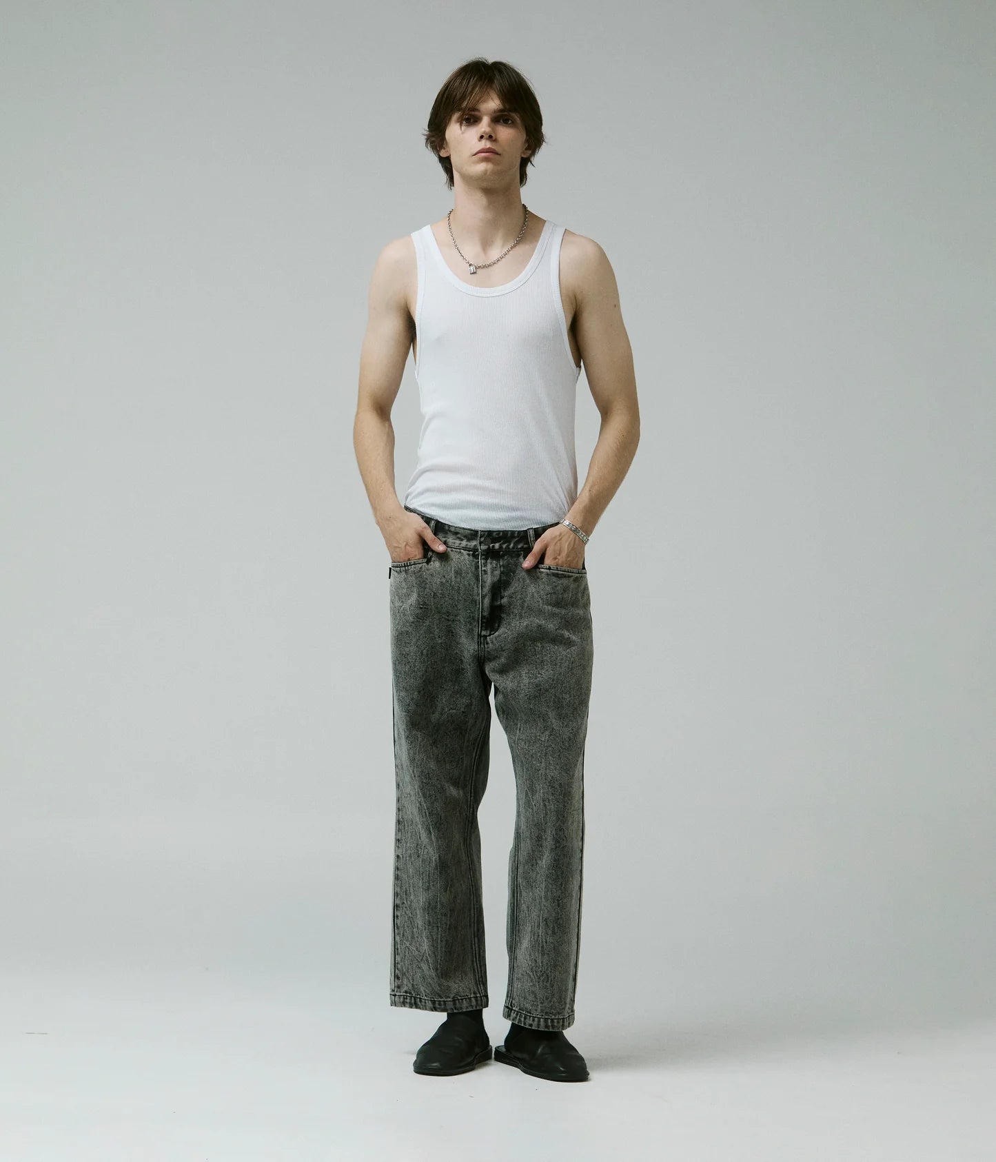 100%プレミアムコットンアシッドデニムを使用し、シグネチャーのAGパンツフィットで展開されています。サイドシームにAGフラッグラベル、隠しジッパー付きバックポケット、ボタン留めバックポケット、ロゴ入りメタルボタンが特徴です。