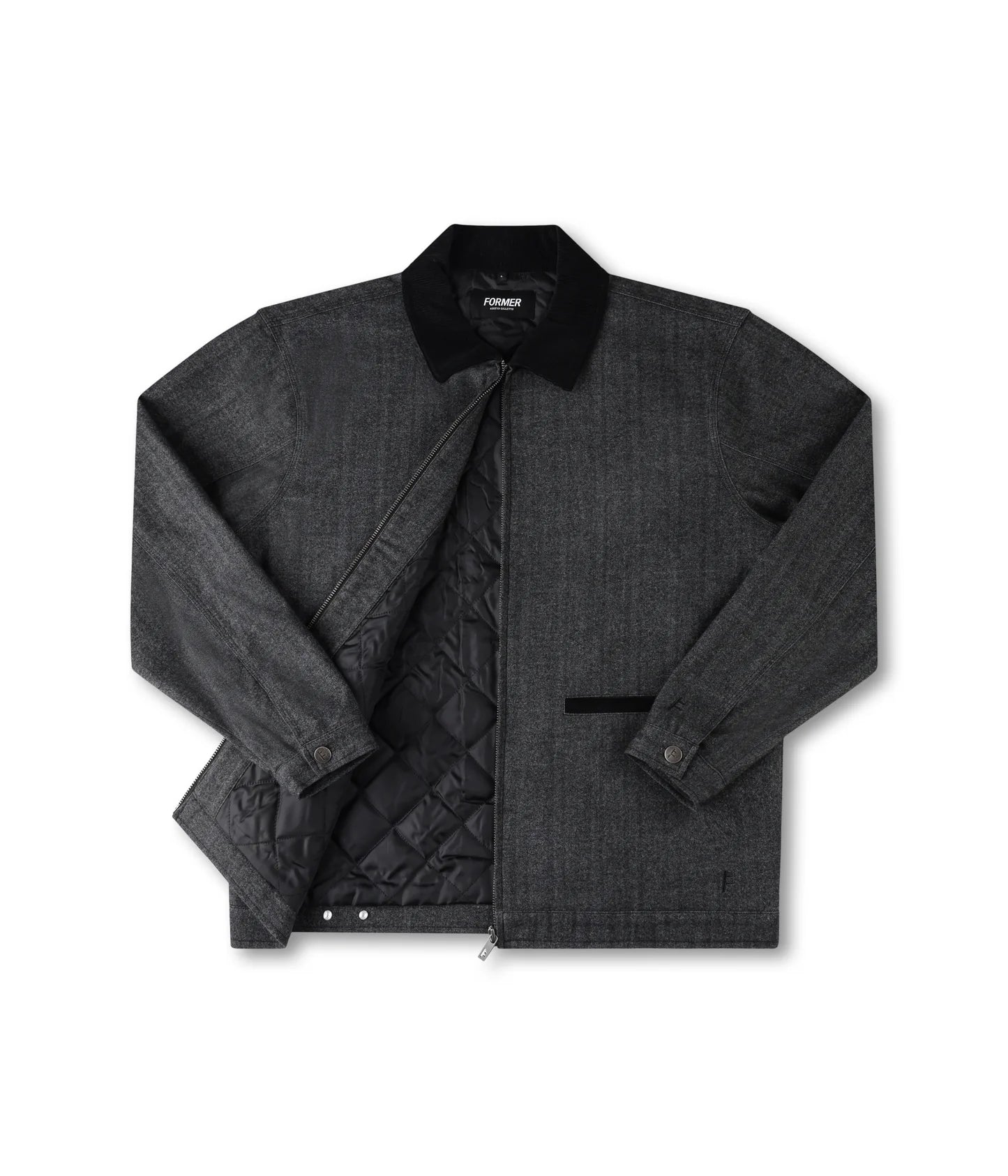 Crafted in a premium wool blend (62% polyester 28% rayon 8% wool 2% spandex) and designed in collaboration with FORMER founder Austyn Gillette. Delivered in our FORMER Cage jacket fit. Featuring diamond quilt lining, double front pockets, Franchise F embroidery, Franchise F metal shanks, Franchise F logo metal zip, and contrast corduroy collar and pocket binding.
