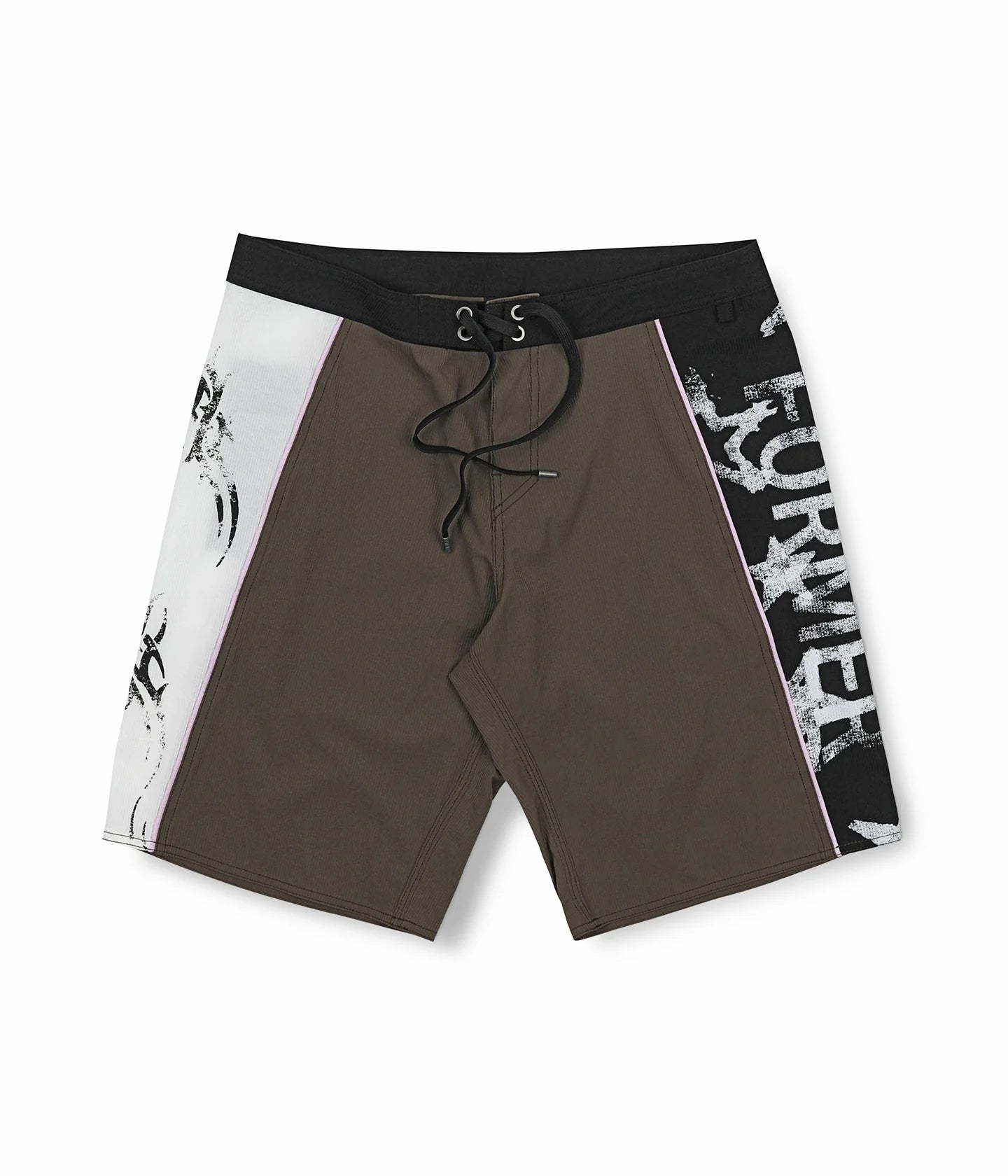 20インチのトランクスは、スタイルと伸縮性を兼ね備えている。サイドパネルのスクリーンプリント、バックポケット、カスタムメイドのメタルアグレット、安全なドローストリングが特徴。
