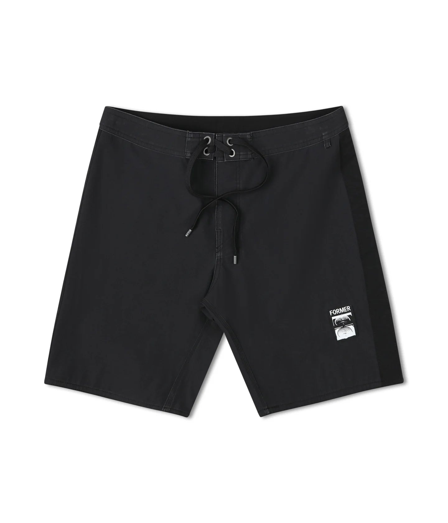 耐久性と快適性に優れたポリエステル、エラスタン生地を使用し、19インチのレッグレングスでお届けします。サイドパネル、FORMERロゴ入りのバックパッチポケット、織りラベル、FORMERメタルアグレットが特徴です。