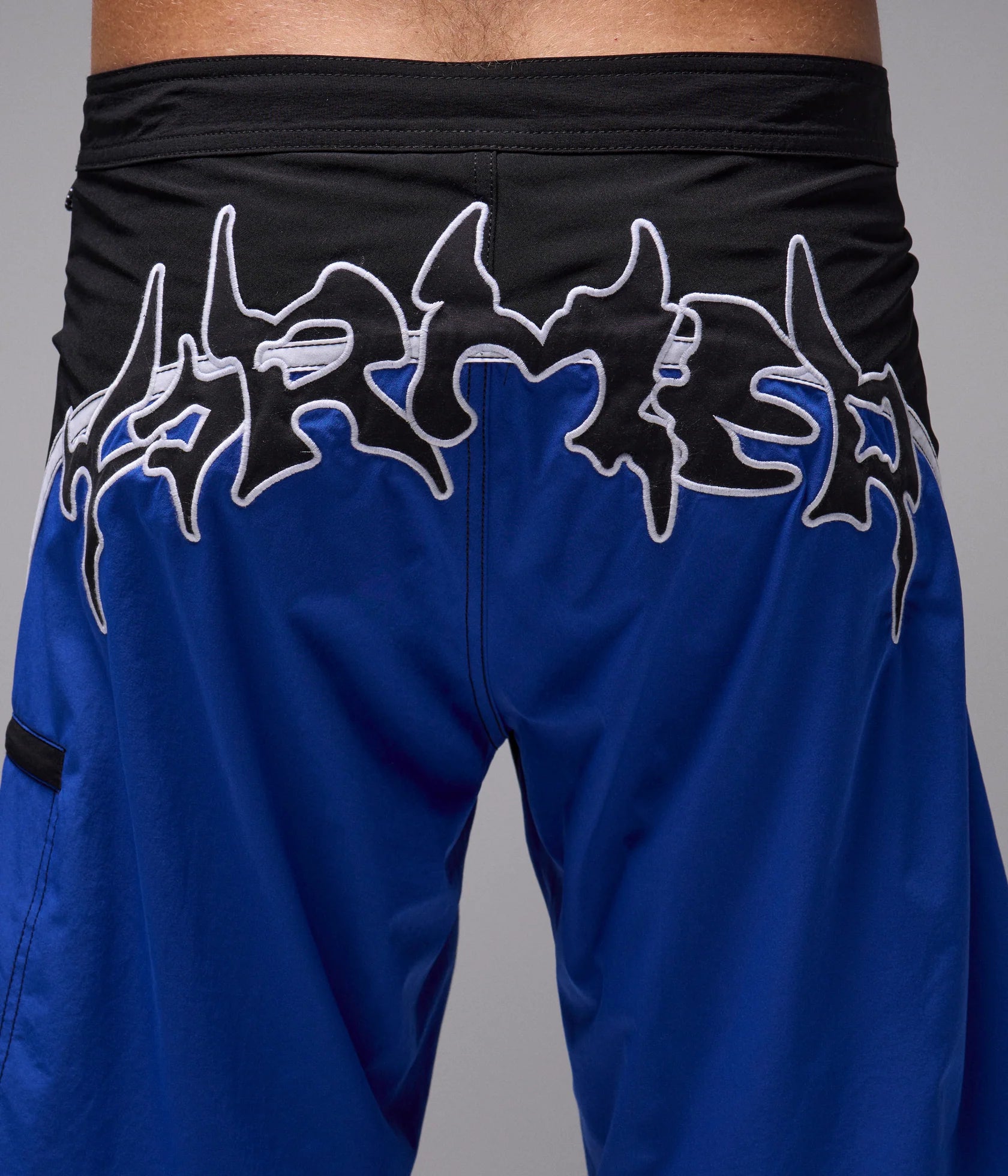 Designed in a premium polyester-spandex blend with 4 way stretch fabric and delivered in our 21" leg length fit. Featuring unique curved panel construction with taping, back applique graphic, side zip pocket, secure drawcord closure and comfortable fixed waist.
