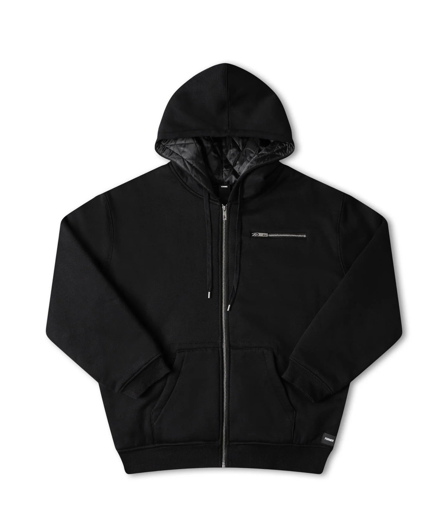 Designed by FORMER Founder Craig Anderson in a premium 320GSM cotton faced brushed fleece with 50% cotton 50% poly for warmth and comfort. Delivered in our standard FORMER hood fit featuring satin quilted lining, rose metal trim, drawcord closure, embroidery detail and chest zip pocket opening.
