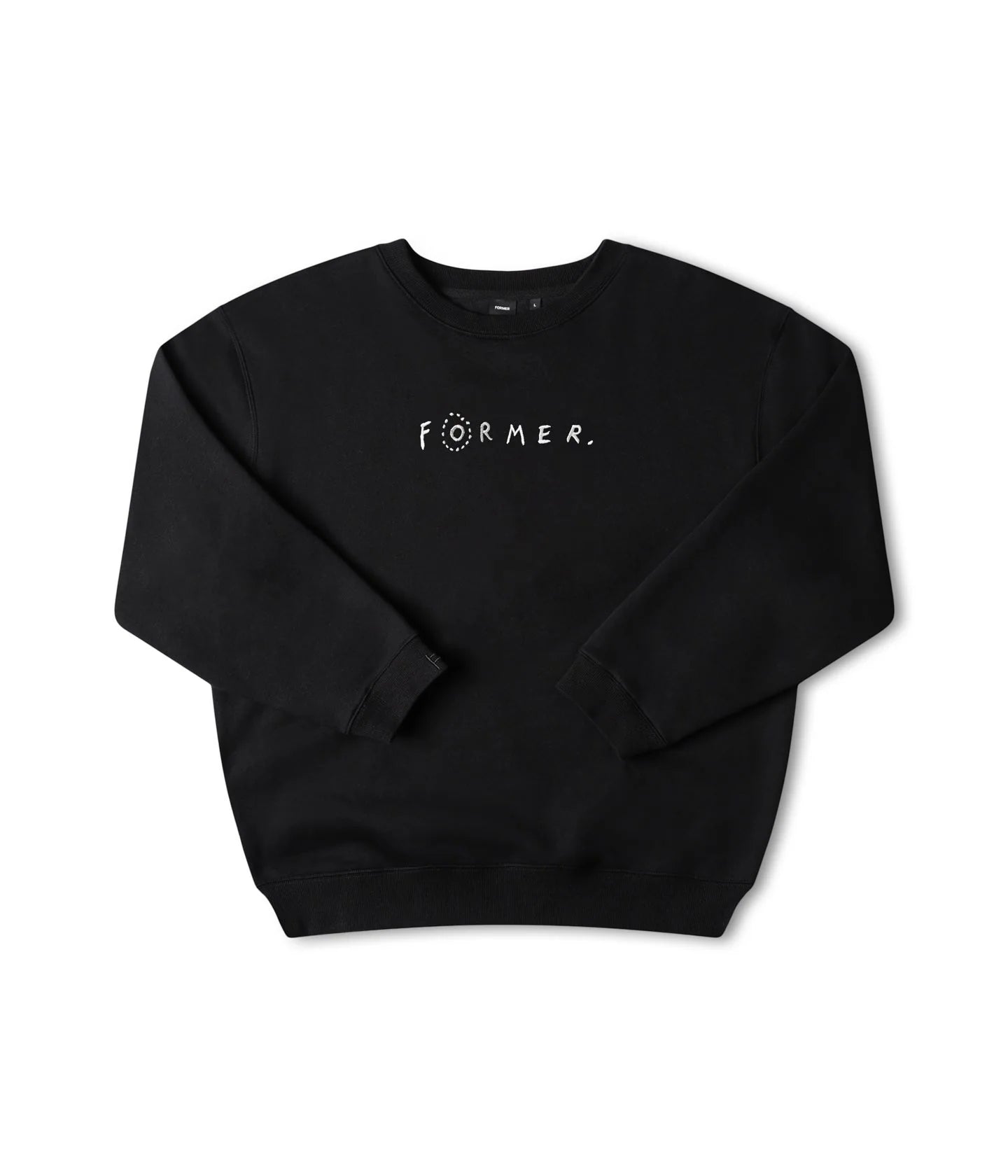 Designed in a premium 320GSM cotton faced brushed fleece with 50% cotton 50% poly for warmth and comfort, and delivered in our standard FORMER crew fit. Featuring front screen print and embroidered F detail.