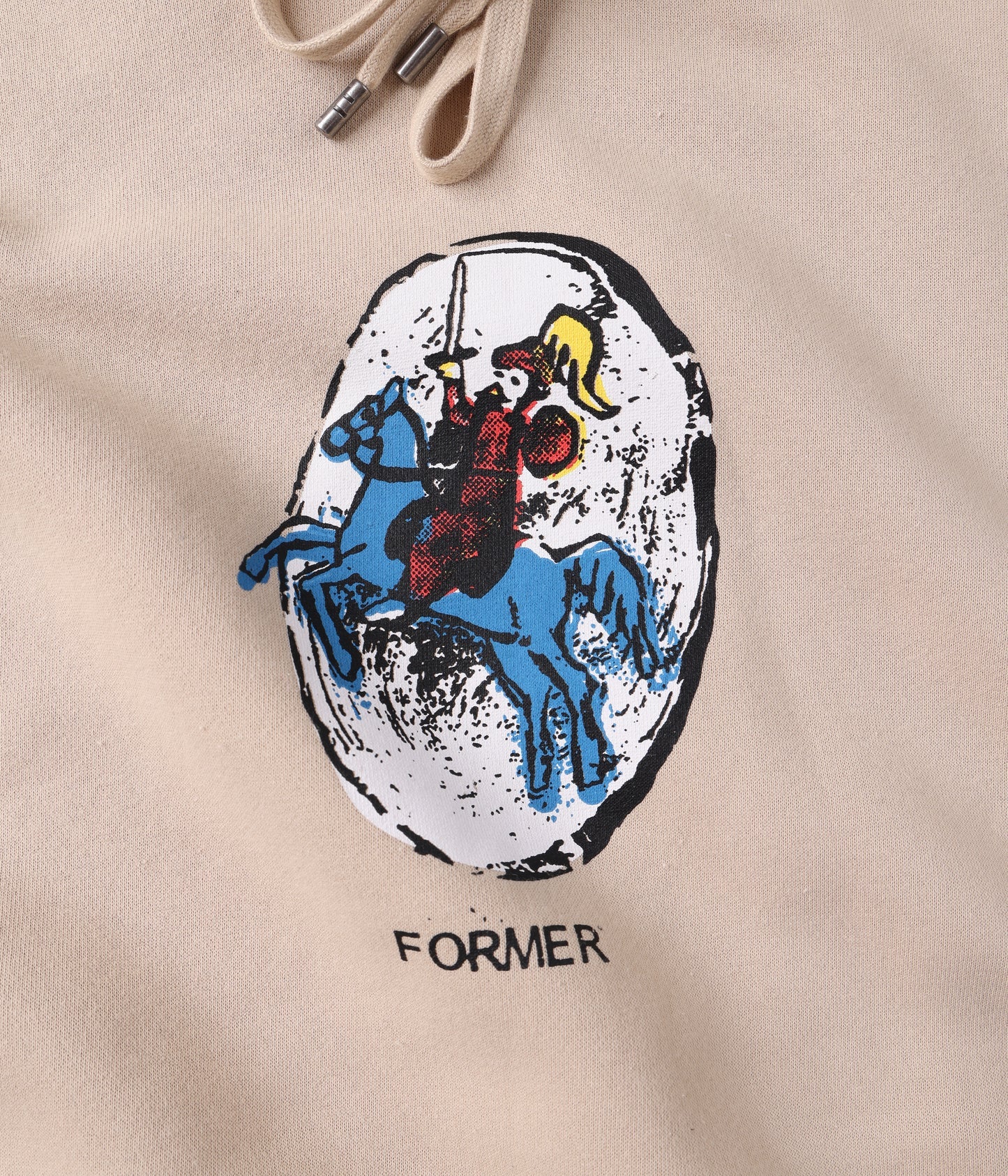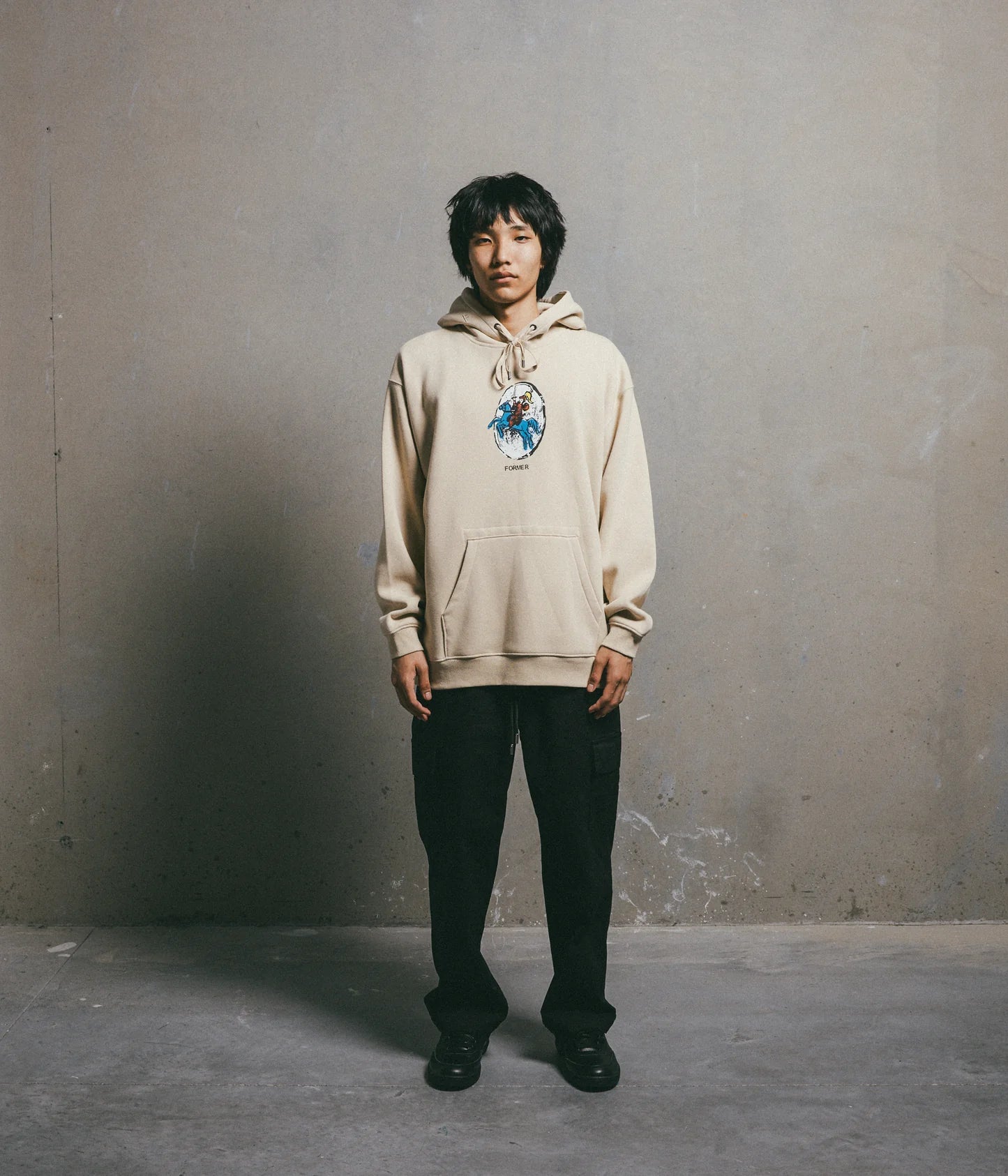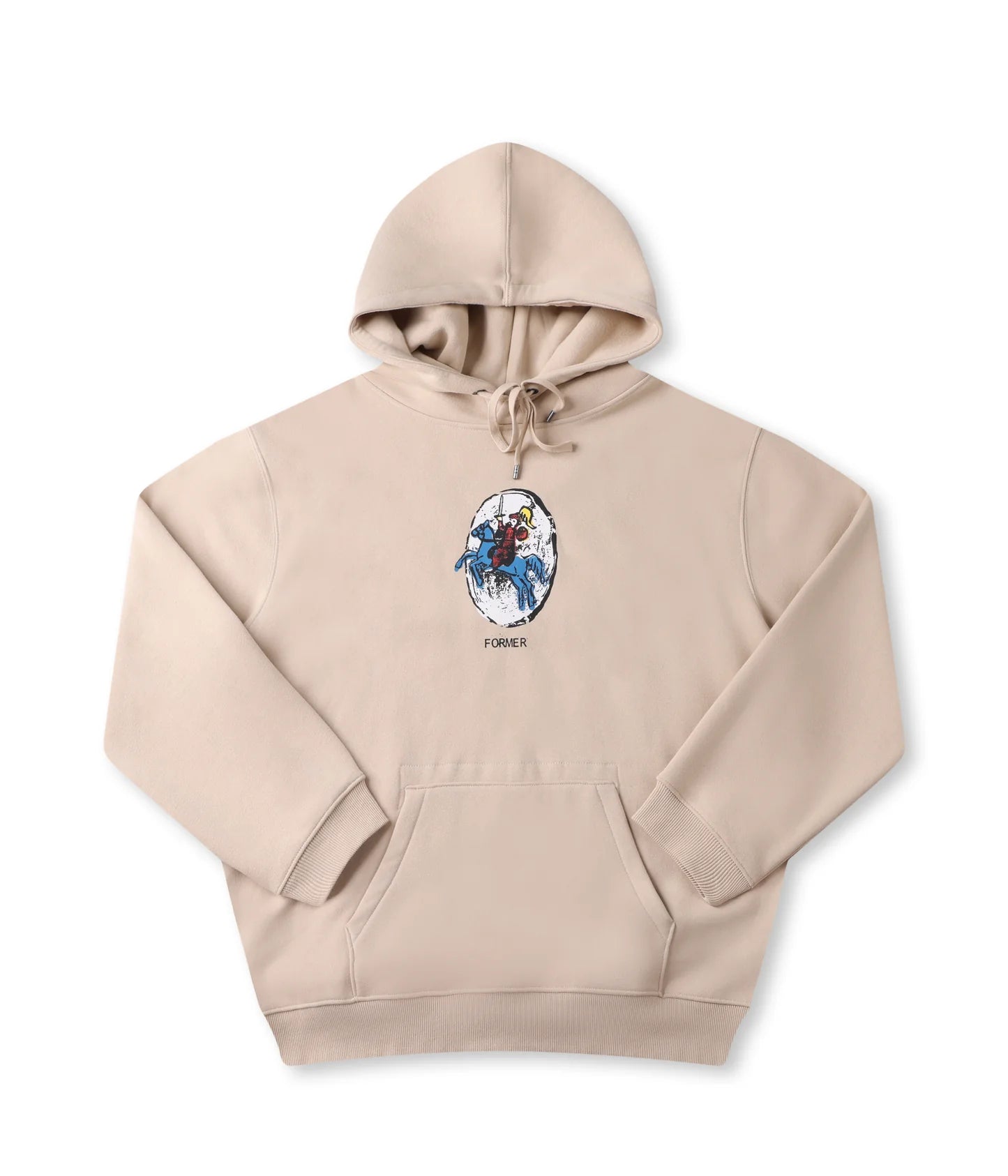 Designed in a premium 320GSM cotton brushed fleece for warmth and comfort, and delivered in our standard FORMER Hood fit. Featuring seasonal front graphic in a soft plastisol screen print, FORMER logo embroidery on hood, drawcord closure with branded metal aglets, front pocket with military stitch detail and double hood lining.