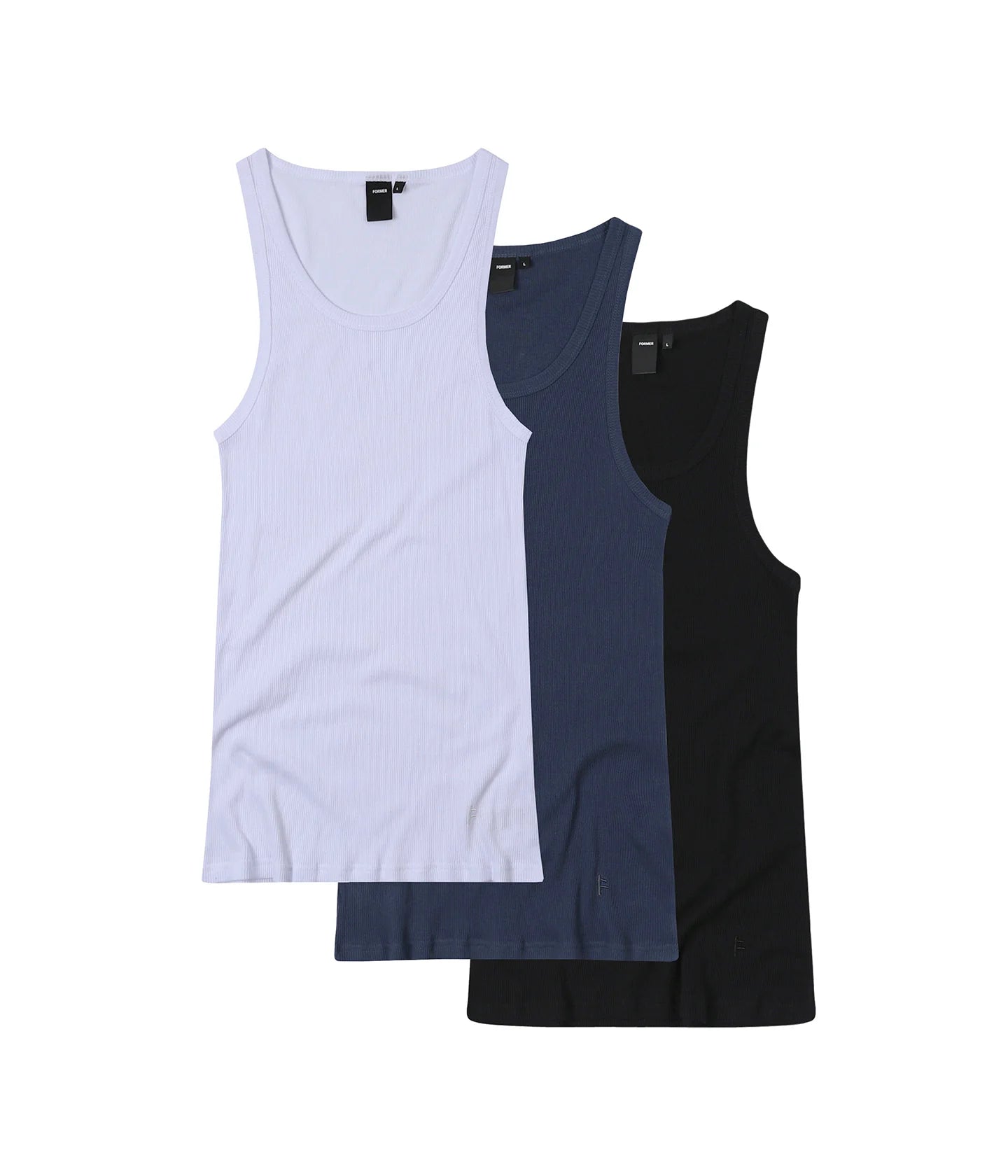 コットン100%のソフトな生地で作られた着心地の良い、ホワイト//ブラック//ネイビーの3枚組。ネックとヘムラインはリブ編みで、ウエストにはフランチャイズロゴの刺繍が施されています。