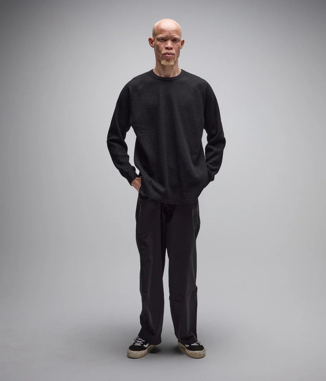 Designed in collaboration with FORMER founder Austyn Gillette, the AG Waffle is designed in a premium cotton blend waffle and delivered in our signature waffle fit. Featuring a raglan sleeve construction, raw hem, bound collar, and tonal Franchise F logo embroidery.