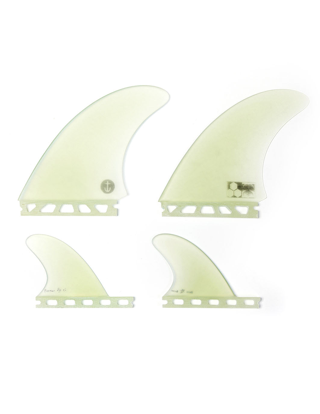 デーンのリクエストは、平行なレールで、カーブとロッカーのあるツインというものでした。ボードとフィンのセットアップはツインフィンの感覚を持てるよう、リアは通常のクアッドより小さく、ツインにより近く配置されています。これにより、独特なルーズ感を持つボードになりますが、これがまた素晴らしいのです。