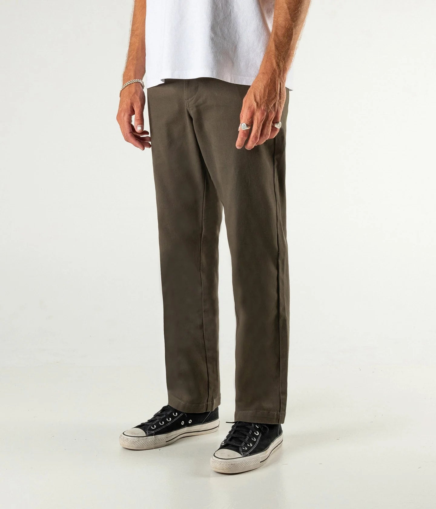 定番であるクラックス・ストレートは、上質で丈夫なコットン97%ツイルとエラスタン3%の混紡素材を使用。レッグオープンは17インチで、モダンなストレートフィット。シグネチャーであるクラックス・レザーのバックパッチ、ブランドロゴ入りのフランチャイズF金具と刺繍が特徴。
