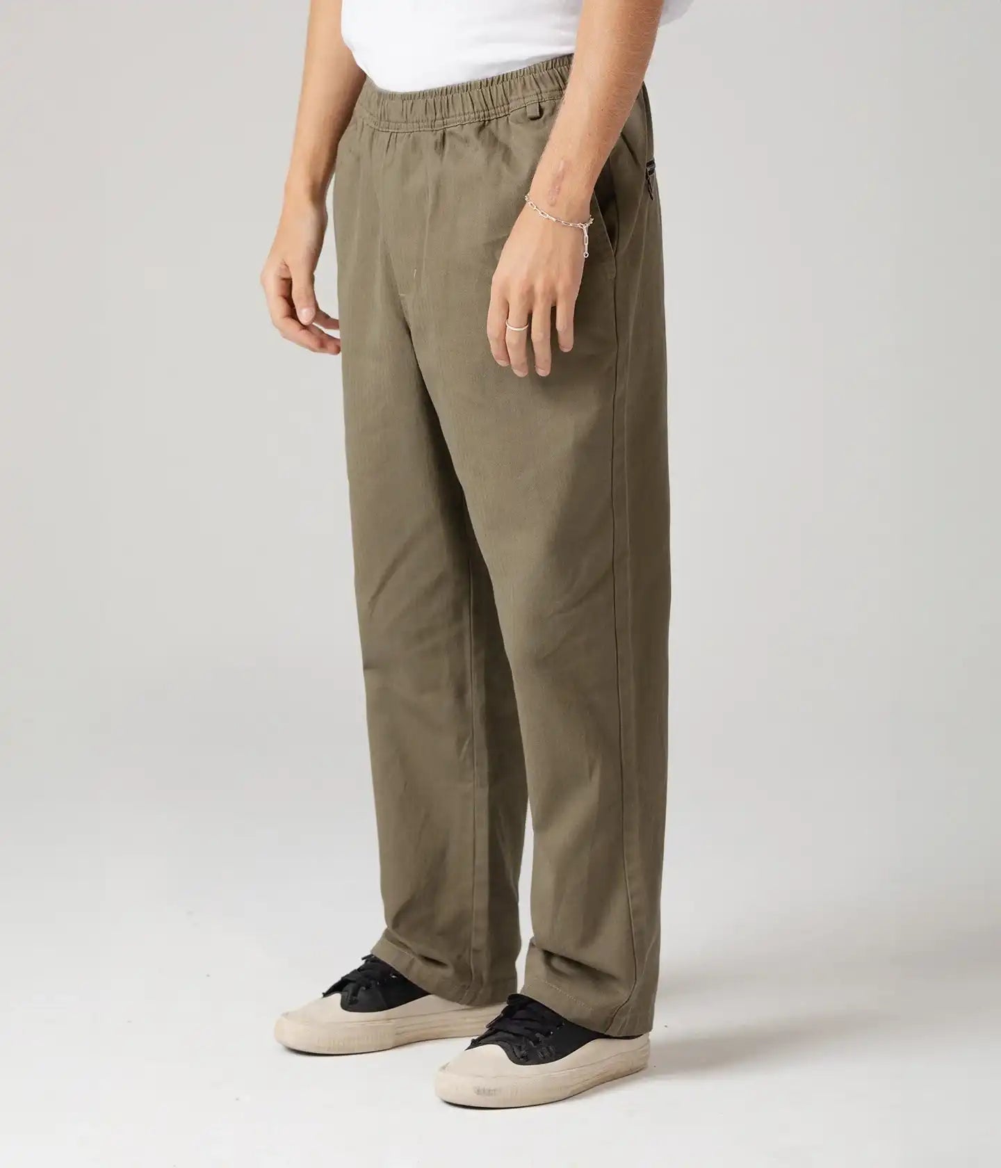 高級感のある柔らかなコットン100%のヘリンボーン素材を使用したリラックステーパードパンツ。伸縮性のあるウエストとドローコードで開閉し、レッグオープンは17.5インチ。シグネチャーのFORMERメタルリングのジッパー付きバックポケット、フランチャイズFのメタルアグレット、フランチャイズFの刺繍入り。