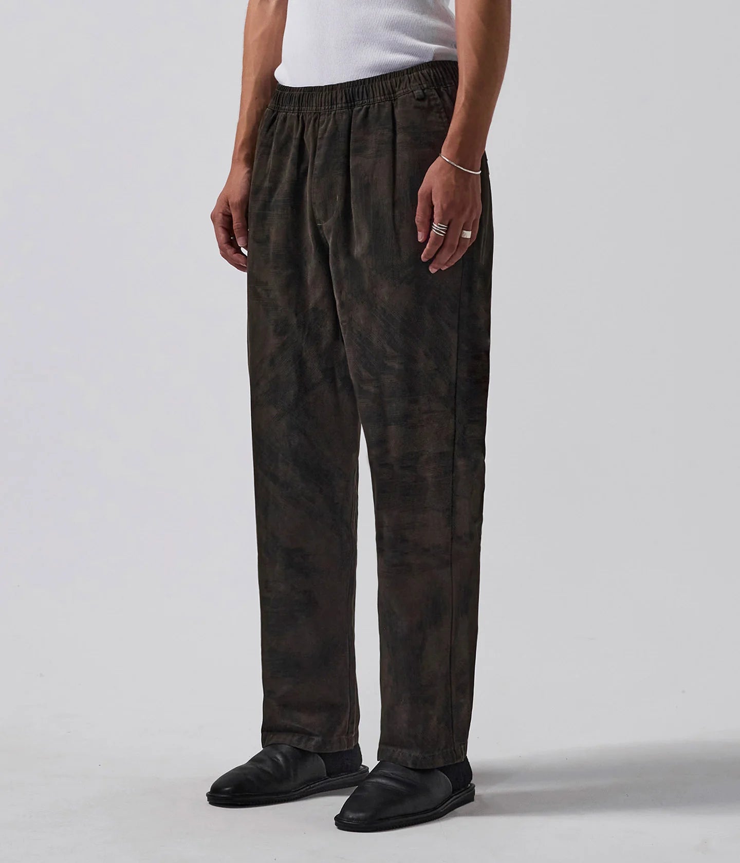 FORMERの代表的な Prayer Pant の限定アップデート。100% コットン製で、ゆったりとしたテーパード フィットです。