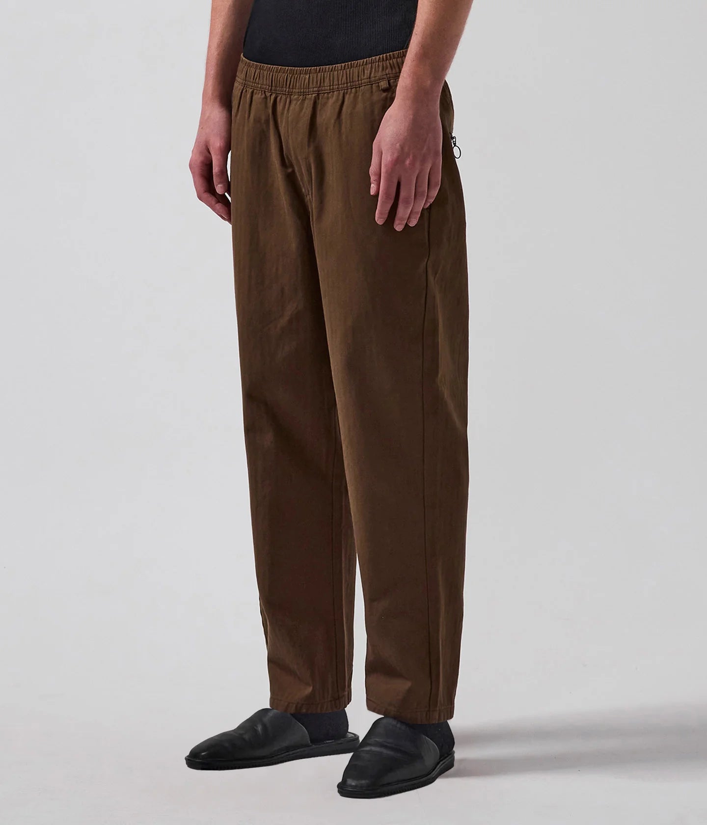 100% コットンのヘリンボーンで、ゆったりとしたテーパード フィットでお届けします。伸縮性のあるウエスト、FORMER メタルリングジッパーバックポケット、Franchise F の刺繍が特徴です。