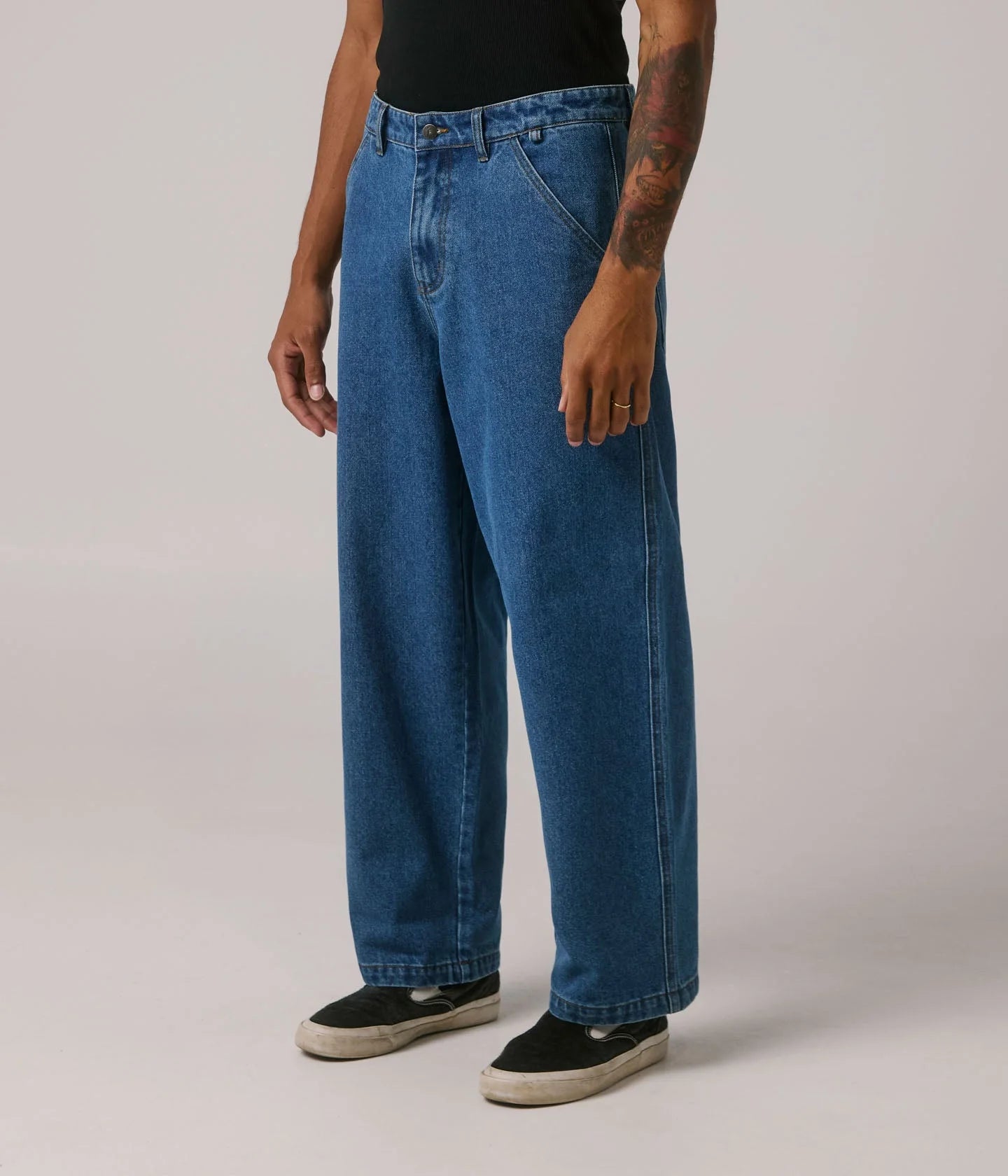 Designed by FORMER founder Dane Reynolds, the Reynolds Work Pant is constructed from a durable Premium 100% Cotton Denim and delivered in our signature Reynolds Baggy fit with a 20" leg opening. Featuring fixed waist, seasonal embroidered art detail and four-pocket design.