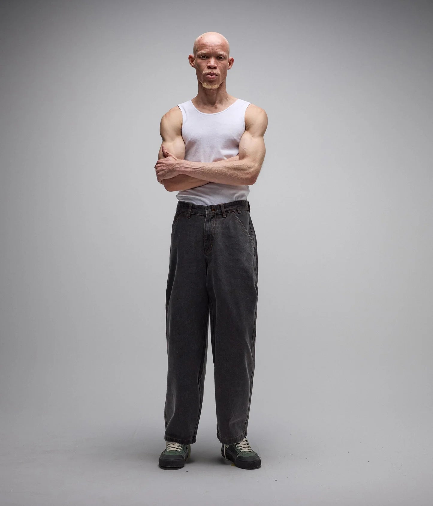 FORMER創設者デーン・レイノルズによるデザイン。耐久性のある100%デニムを使用し、ワイドな19インチの裾幅を持つレイノルズシグネチャーバギーフィットで登場。ワークウェア風のバックポケット、ヴィンテージウォッシュ、バックポケットの刺繍、そして斜めのフロントポケットが特徴です。