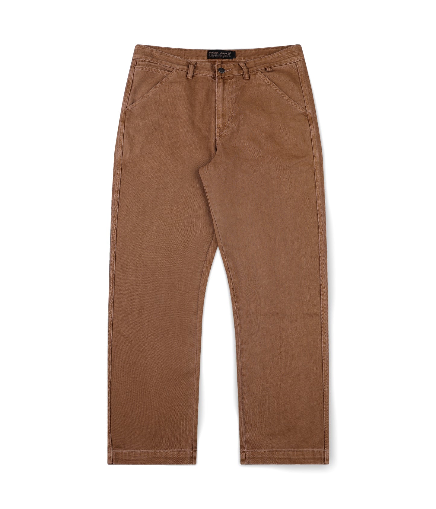 Designed by FORMER founder Dane Reynolds, the Reynolds Work Pant is our best selling baggy fit with a wide silhouette and 19” leg opening. Constructed in a durable 100% washed denim fabric, featuring a fixed waist, signature pop colour Crux logo woven label on back pocket, double workwear pockets, and FORMER branded metal shank button.
