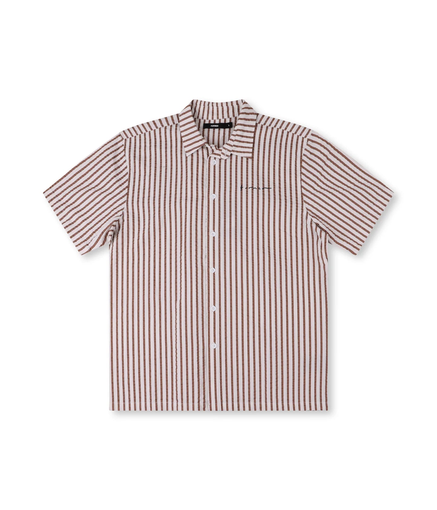 Crafted in 100% cotton seersucker yarn-dyed stripe and delivered in our standard FORMER Vivian shirt fit. Featuring front graphic embroidery on chest and button closure.