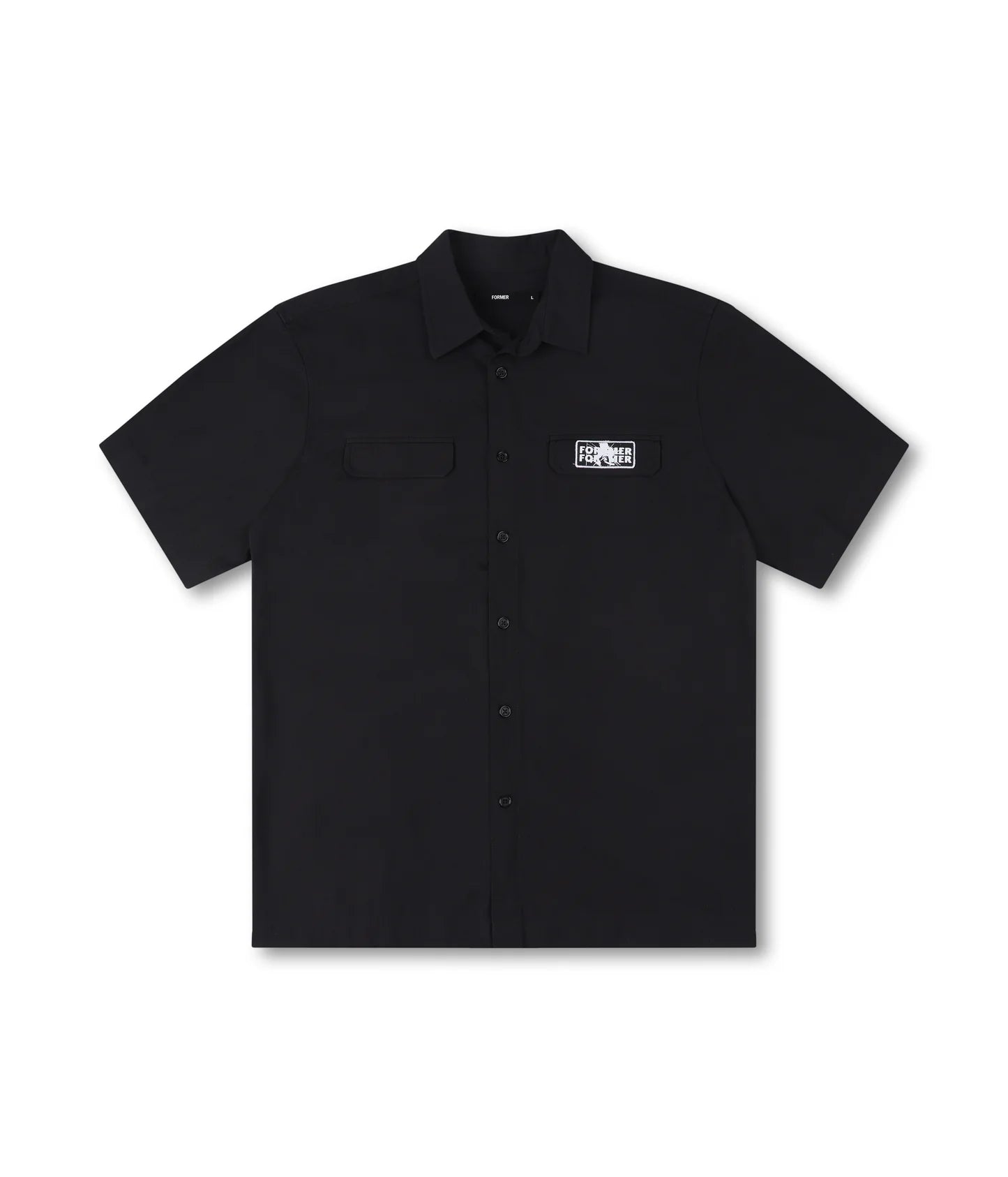 Crafted in 100% cotton workwear twill and delivered in our FORMER Broadcast shirt fit. Featuring art PU patch on pocket flap, button closure, and double flap pockets.