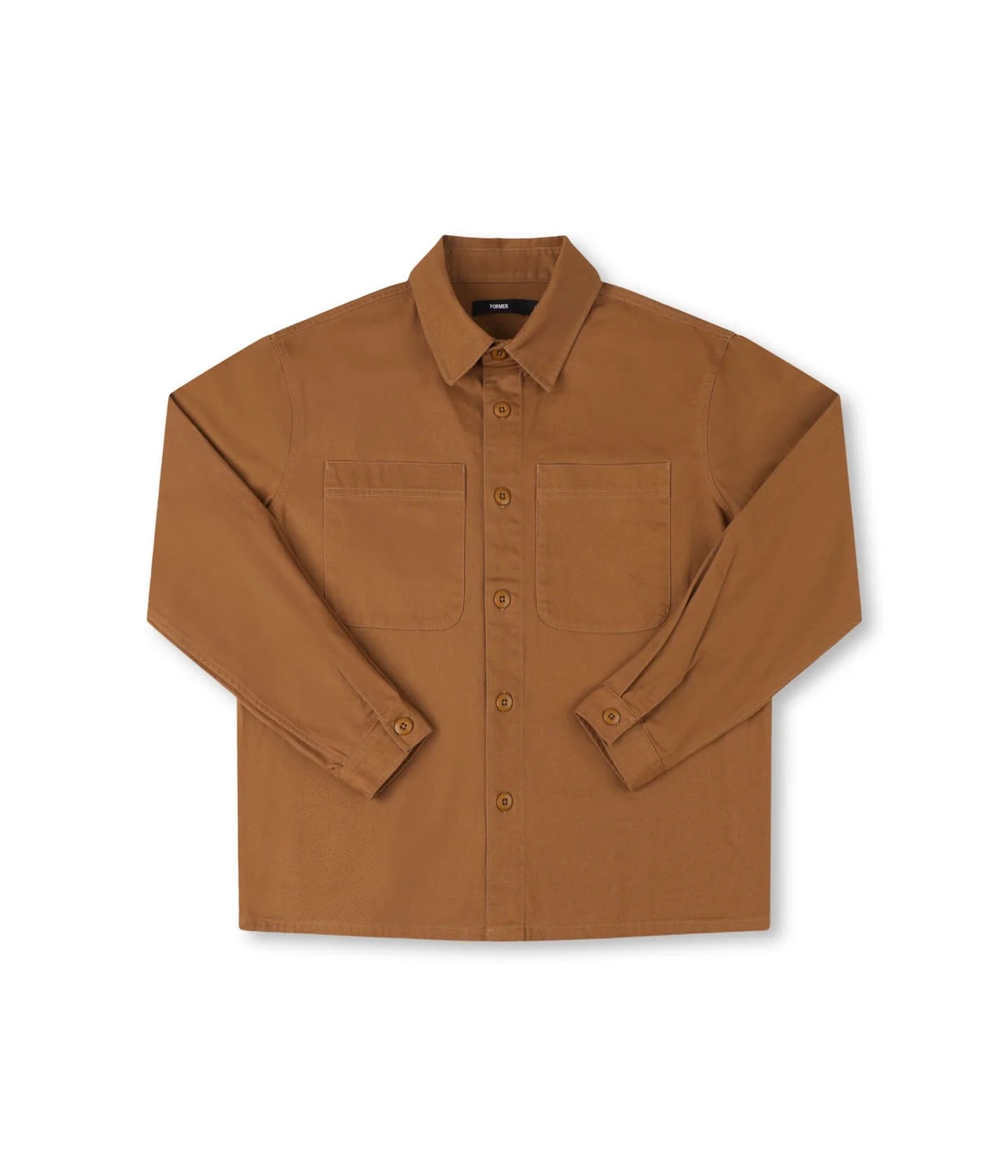 100%コットンヘビーウェイトツイルで仕立て、FORMERオーバーシャツフィットでお届