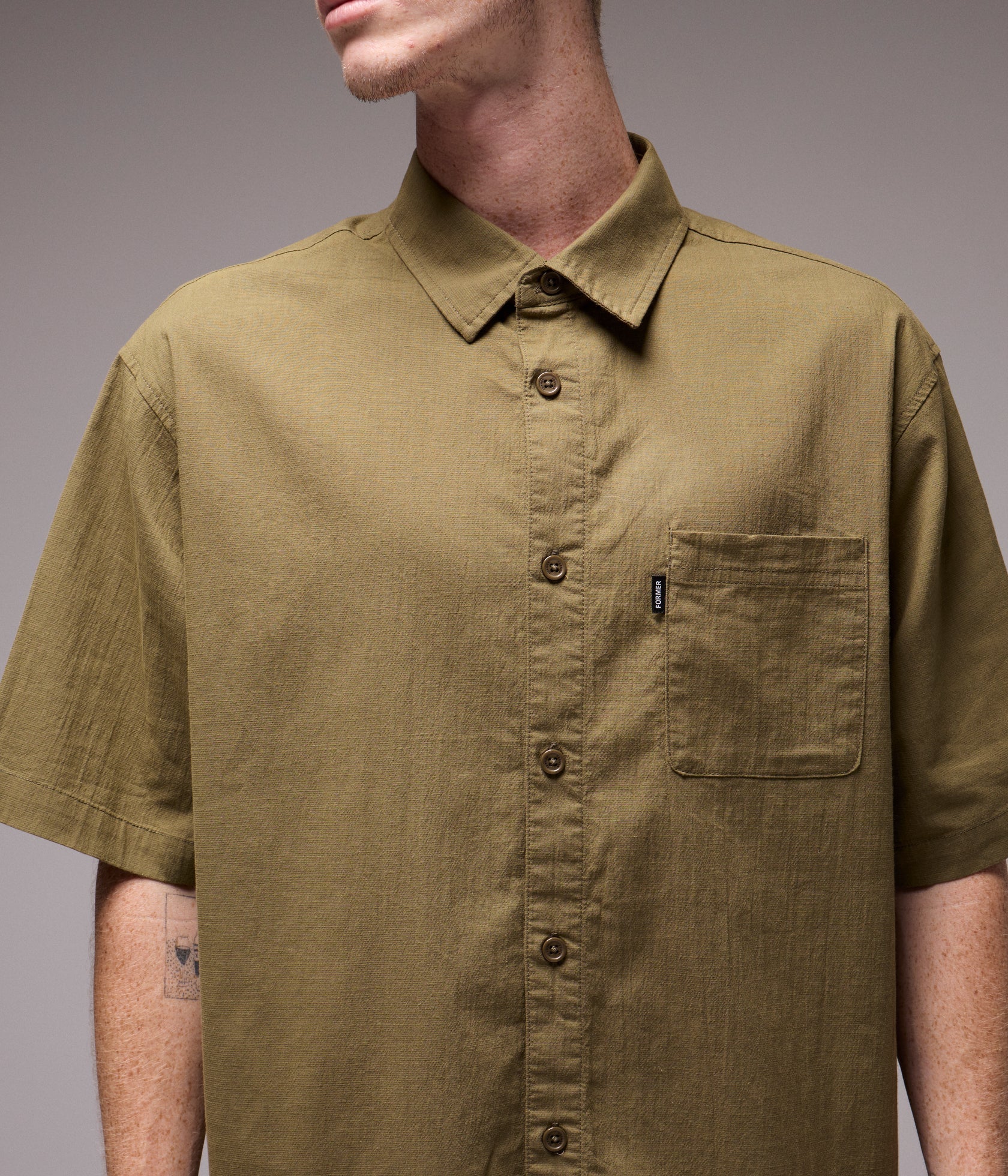 Our best-selling premium basic shirt. The Legacy Shirt is designed in a premium polyester blend with a comfortable textured cotton feel. Delivered in our Vivian shirt fit featuring a small and minimal flag label, chest patch pocket, and front button closure.