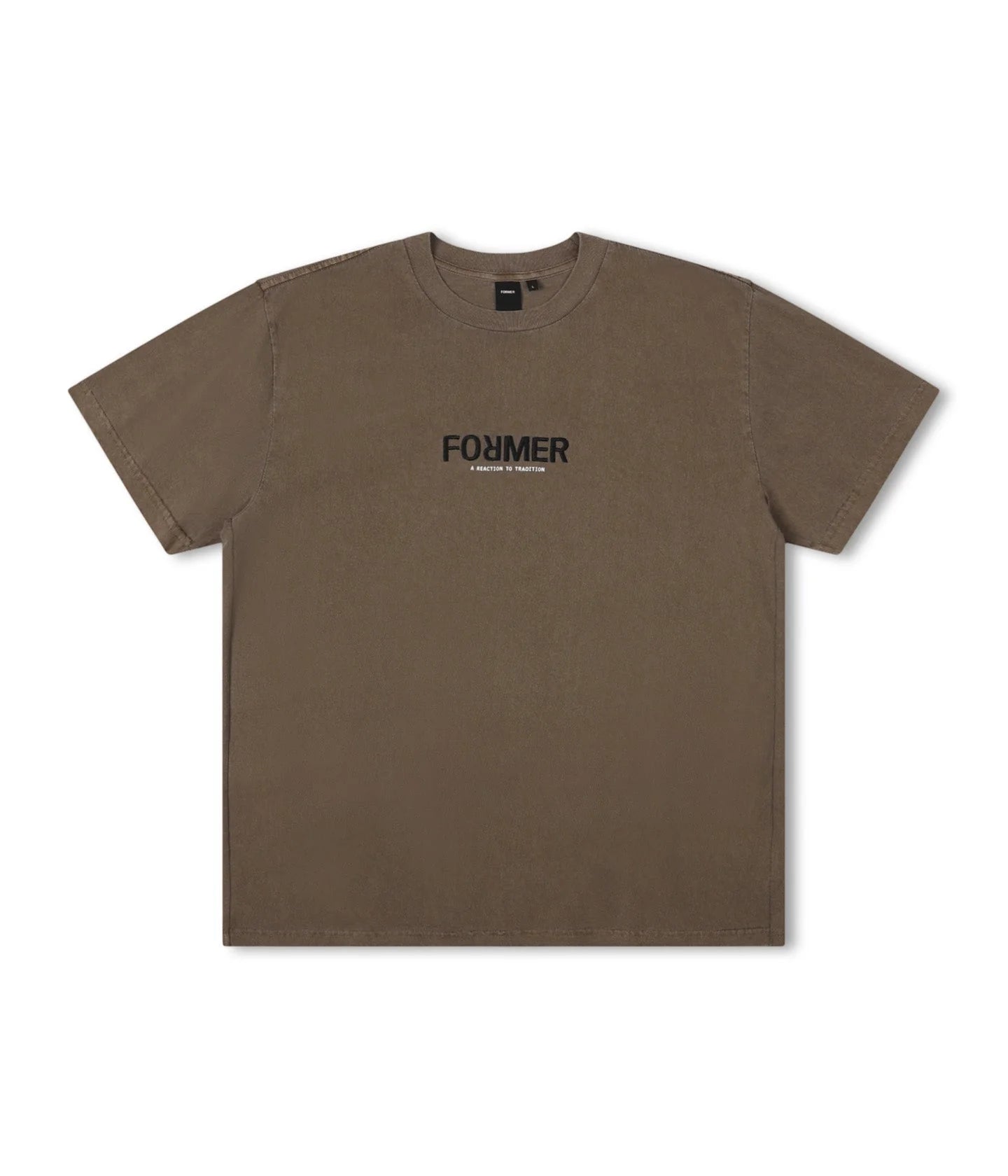 Crafted in a premium 200GSM jersey cotton in our standard FORMER T-shirt block for a relaxed and comfortable fit. Delivered in our signature vintage "Merch-Wash" and featuring a front graphic embroidery with a soft hand plastisol screen print.