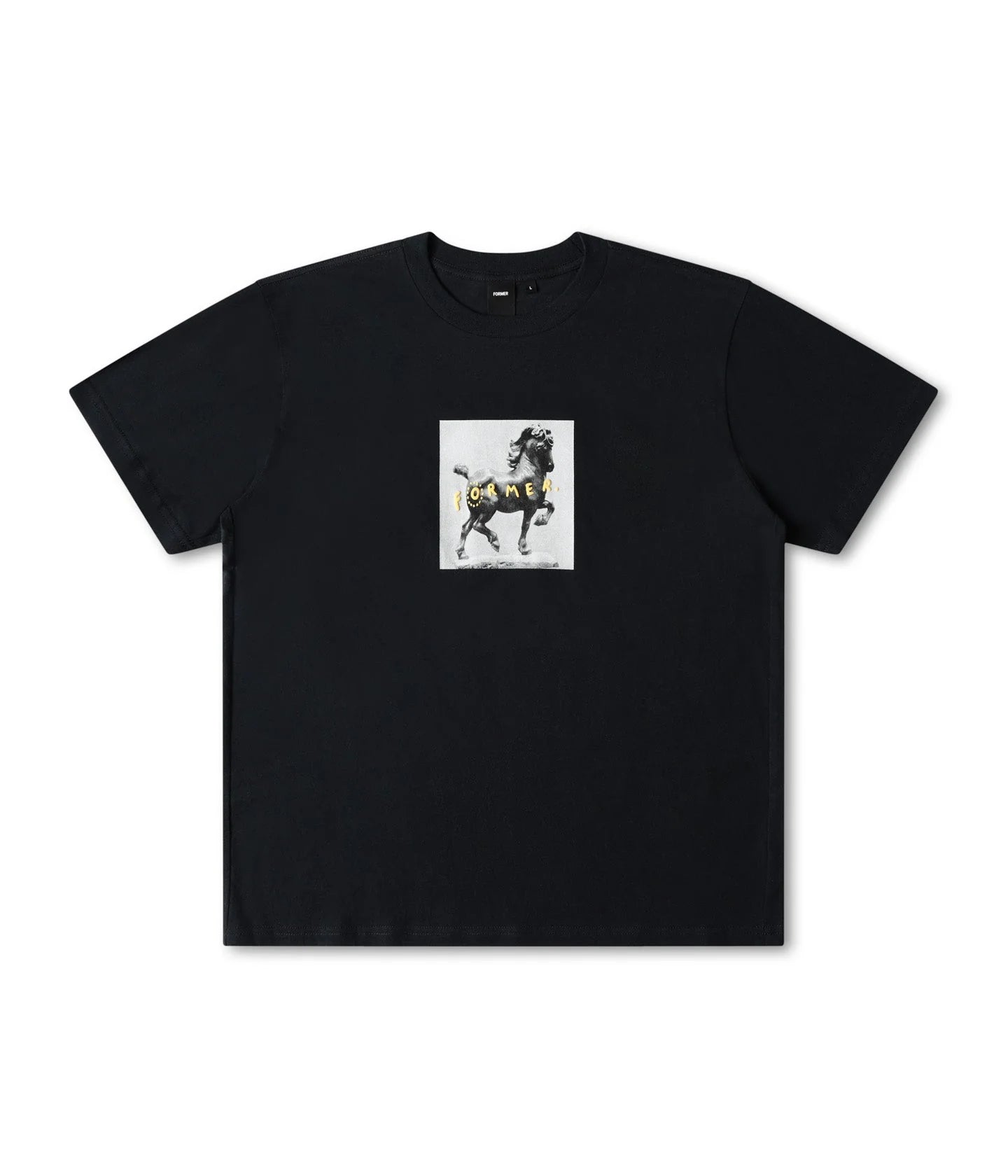 Crafted in a premium 180GSM jersey cotton and delivered in our standard FORMER T-shirt block for a relaxed and comfortable fit. Featuring a front graphic in a soft hand plastisol screen print.