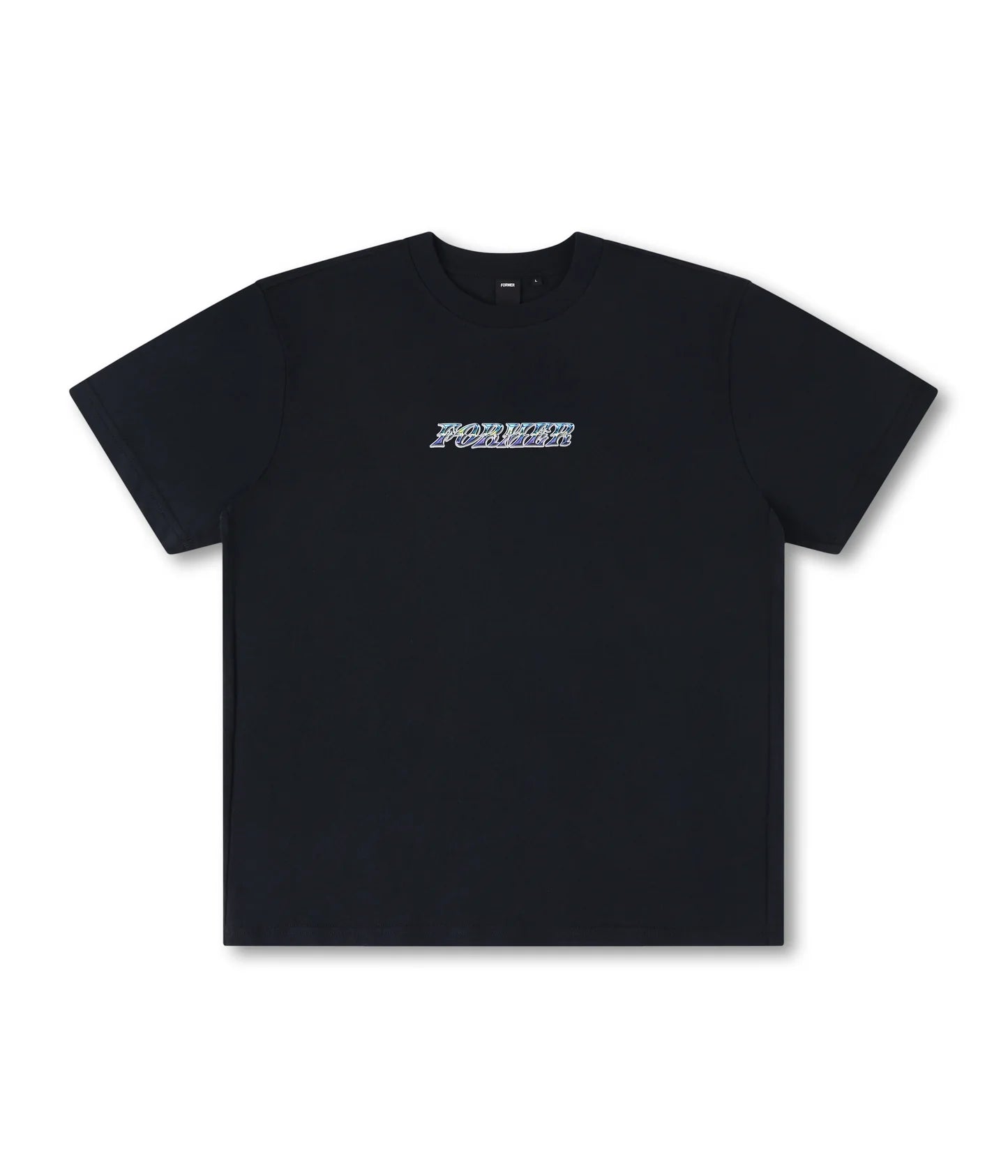 Crafted in a premium 200GSM jersey cotton and delivered in our standard FORMER T-shirt block for a relaxed and comfortable fit. Featuring a front graphic digital print on a solid black base.