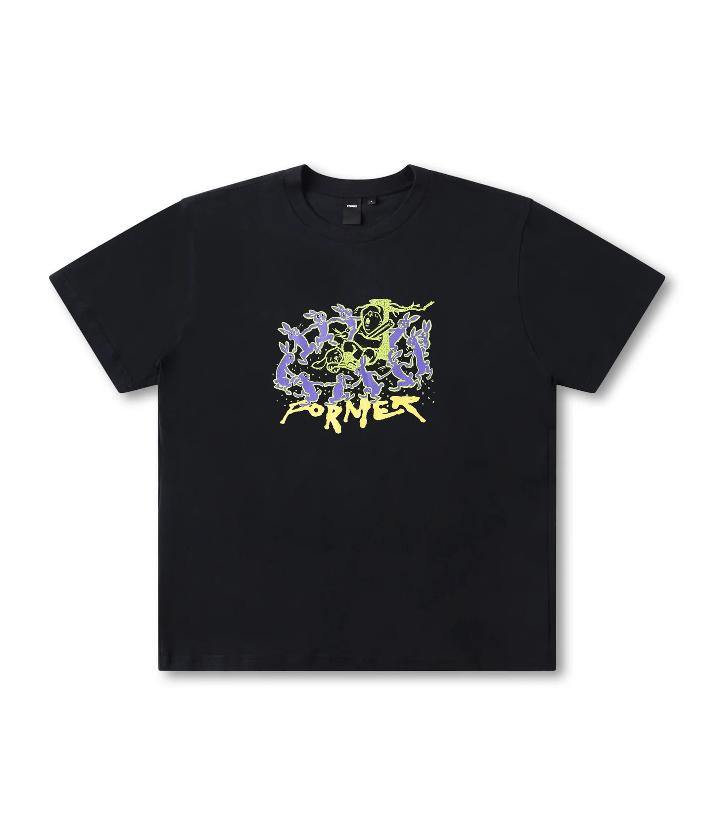 Designed in a premium 200GSM jersey cotton and delivered in our standard T-shirt block for a modern and comfortable fit. Featuring a seasonal front graphic in a soft hand plastisol and cracked print on a solid black base color.