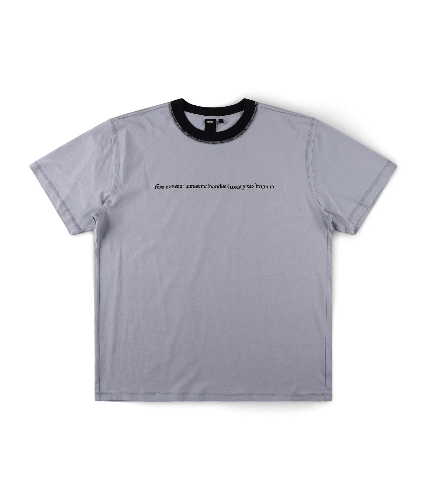 Designed in a premium 200GSM jersey cotton and delivered in our standard T-shirt block. Featuring inverted seams and seasonal front graphic embroidery on a cement base color.